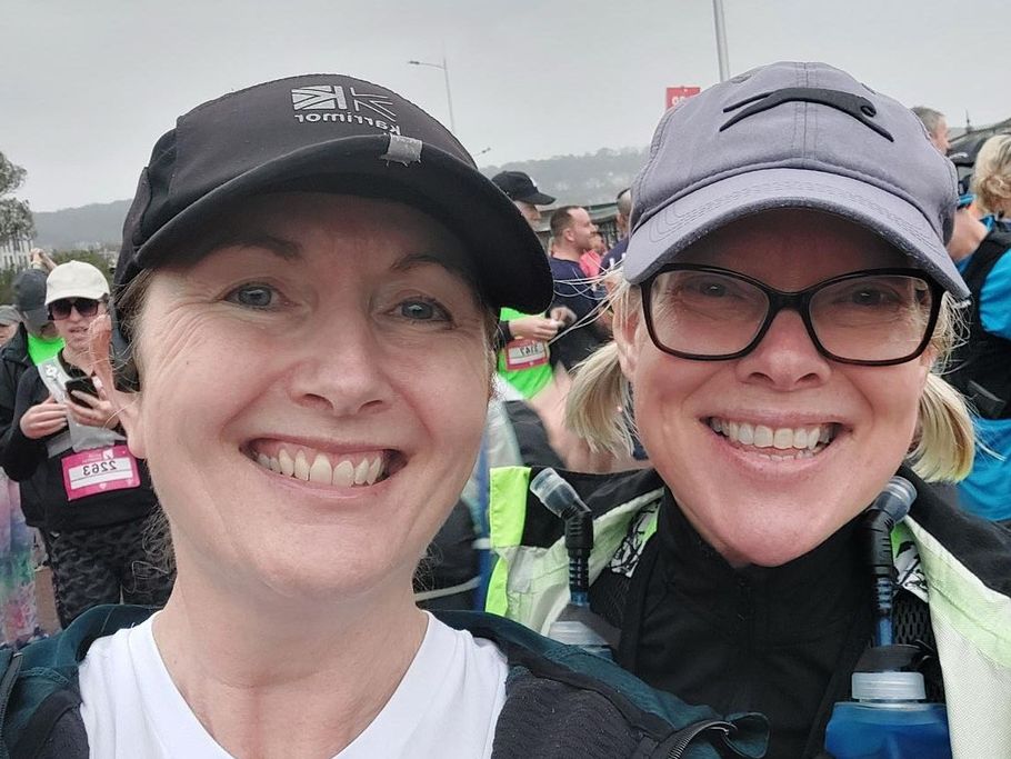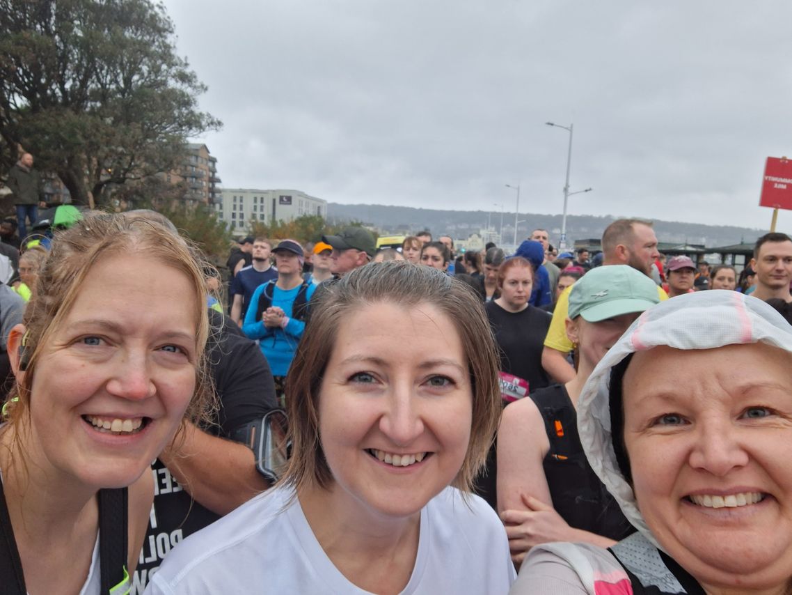 "Sarah and I look as happy at the beginning as at the end. Not the best weather, but we'd done training in much worse. It was my 7th and my 3rd with my best friend."