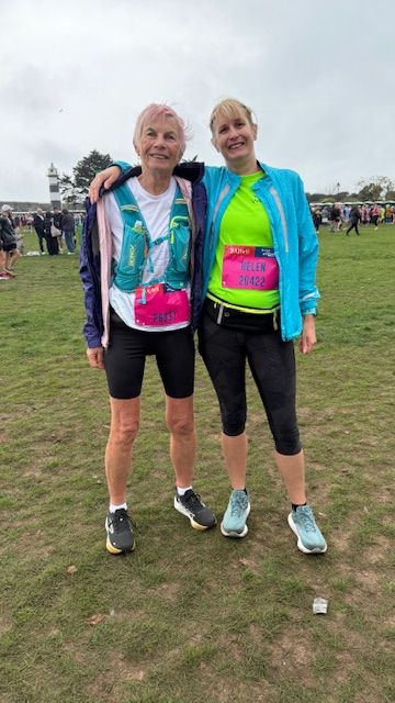 Helen and I were pleased with our times—2 hours and 1 hour 35 minutes—feeling proud of our efforts.